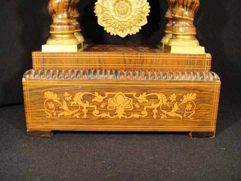 FRANSK Konsolur, palisander med intarsia af Citrontræ, urhus båret af drejede snoede søjler og Forgylde Bronzemontering.