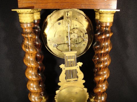 FRANSK Konsolur, palisander med intarsia af Citrontræ, urhus båret af drejede snoede søjler og Forgylde Bronzemontering.