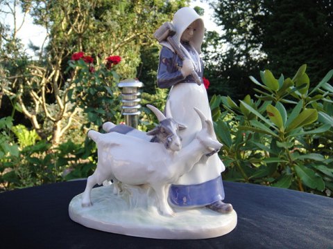 Pige med Geder. Højde: 24 cm , Længde:19 cm. Royal Copenhagen Rc nr 694 1. sortering.