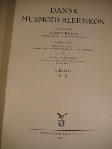 RED: KAREN Braae: Danish housewife Encyclopedia 2 Volume. Standard, 1951-1952. 1370 pages. Danish. Half Leather. Copies of wear. In Editorial: Ulla Pedersen and Astrid Stoumann Illustrated black / hvid.Bind ll worn at the back.