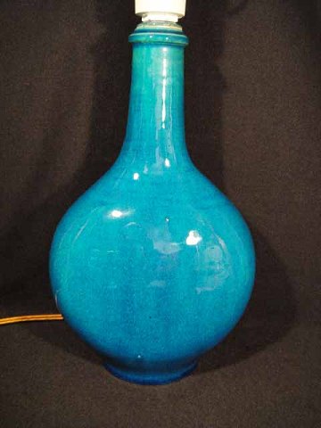 Kähler Bprdlampe i Blå glasur. Højde: 27 cm + fatning = ialt med fatning 44 cm