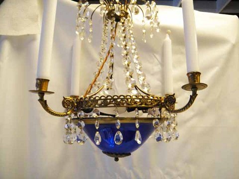 under kronen påmonteret blå glasskål.