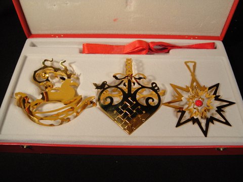Georg Jense sam-pak med 3 Juleuroer fra 1991, 1992 og 1993 år . Juleroer forgyldt messing.