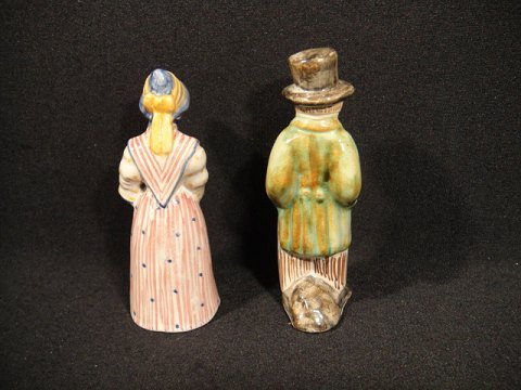 Bornholmer pige og mand med høj Hat. Højde: 10,5 cm. L.Hjort Bornholm Bornholm.