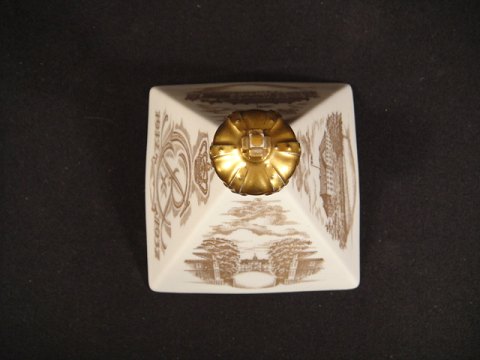 Bing & Grøndahl pyramide afsluttet med guldstafferet krone fra Chr. X's jubilæum 1912-1937