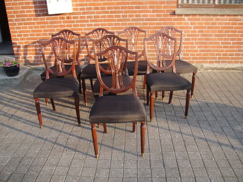 Hepplewhith . "Randers Møbelfabrik" 8 stk. Stole med hestehårs betræk.