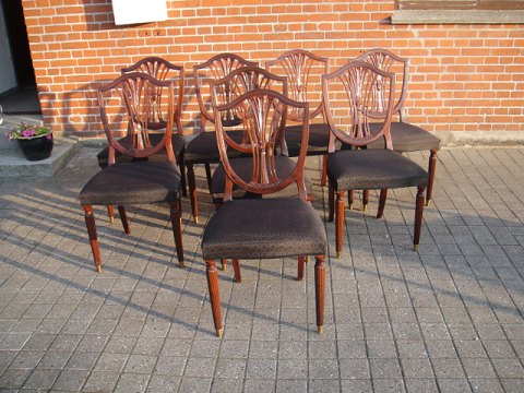 Hepplewhith . "Randers Møbelfabrik" 8 stk. Stole med hestehårs betræk.