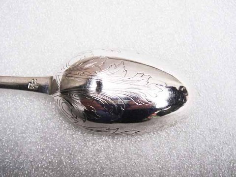 Denne spiseske dateret 1764 med Gravering S.P.S - A.P.D 1764. på Bagsiden.