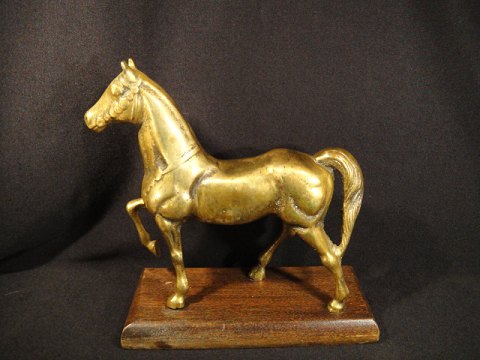 Bronze hest på træstander.