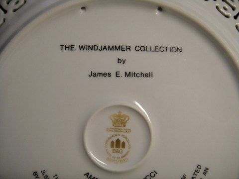 motiv Full-Rigged " Amerigo Vespucci " , Italien. er nr. 5 i en serie af 6 stk. windjammer Tallerkner / platte. nr. 8870/633 Fremstillet af Bing & Grøndahl.