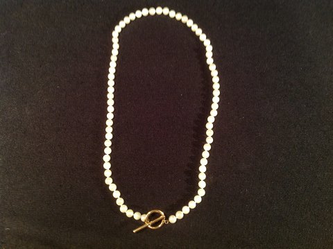 Saltvands perlekæde med 14k. guld lås. Længde: 46 cm. 6 mm perler.