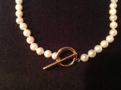 Saltvands perlekæde med 14k. guld lås. Længde: 46 cm. 6 mm perler.