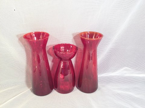 2 stk. i rødt vreden glas. Højde: 19,8 cm og 20 cm. cm.