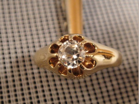 Gold ring with white sapphire.