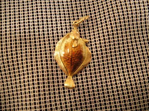 Plaice with Enamel. 14k Gold 585 small chip in the enamel on the top.