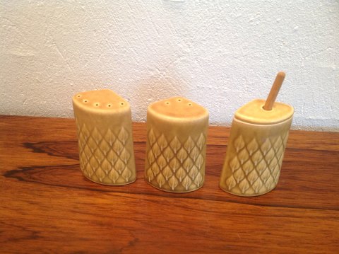 Relief set consisting of salt, pepper and mustard.