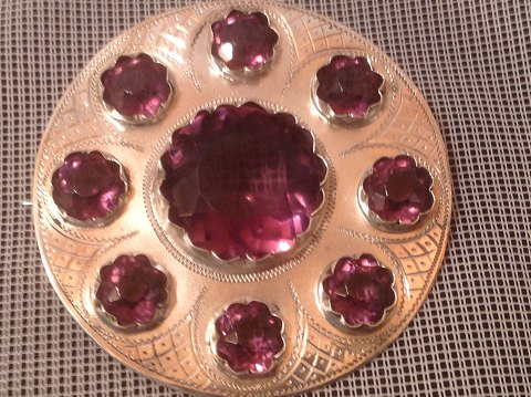 med stor Amatyst i midten Ø 24,5 mm, og omkranset af 8 mindre amatyster Hver på Ø 11 mm.