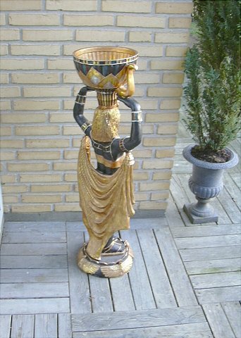 Stor flot Ægypisk kvinde som holder en skål på sit hoved H: 103 cm.