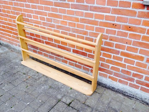 Tallerkenhylde i 3 etager i afsyret fyrtræ. Højde 74 cm , bredde 124 cm. Flot og pæn stand