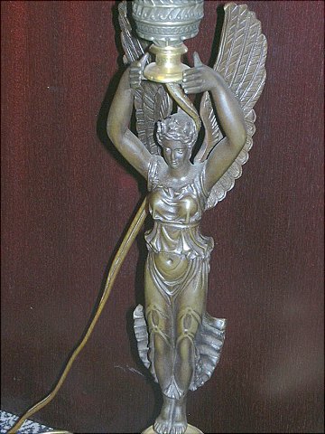 Bordlampe empirestil med engel som holde lysholder