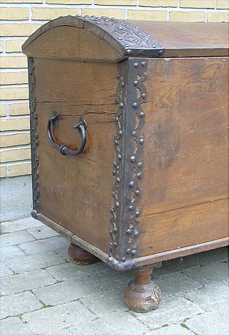 Flot Barok Kiste i egetræ med jernbeslag B:67 cm L:145 cm H:80 cm