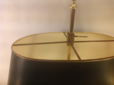 table lamp with green metal screen.