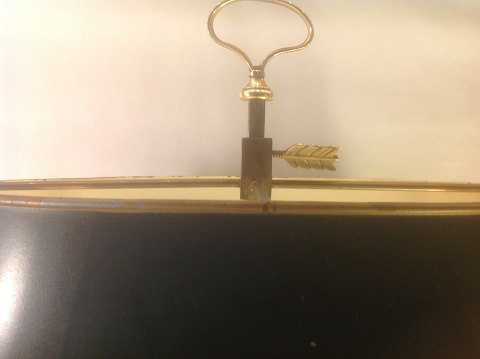 table lamp with green metal screen.