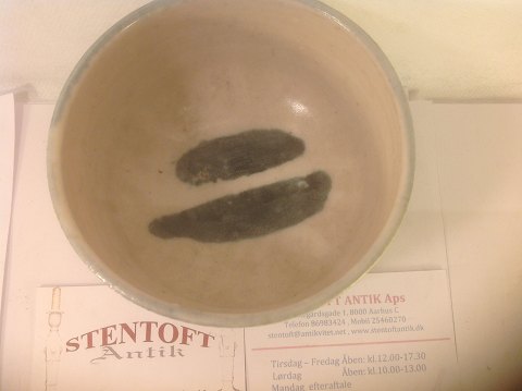 keramik skål med grøn og mælkefarvet glasur.
