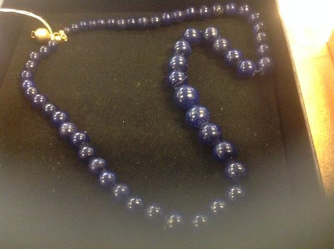 Lapis lazuli necklace, in the course of polished lapis lazuli beads, clasp 14 kt. Length: ca. 45 cm. Perlediam. lapis lazuli beads from Ø 4 mm to 11.5 mm. Target lock Ø 8 mm.