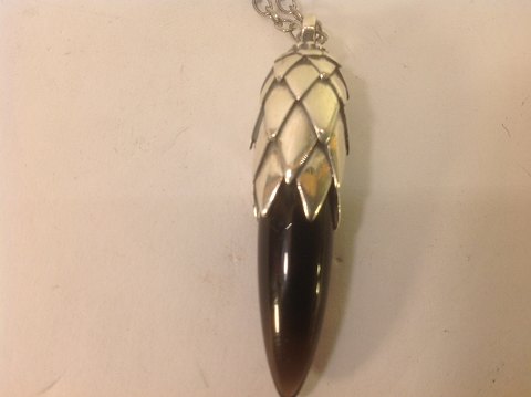 vedhæng med røgkvarts. i firm af kogle.
