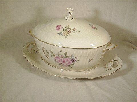 Stor Frisenborg Terrin Royal Copenhagen nr 1666 med underfad (lille glasur hak i underfad)