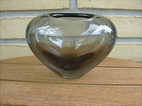 Hjerteformet vase Røgfarvet af Per lytken udført for Holmegård Glasværk flot stand