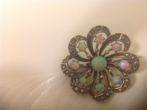 Broche med opaler og perler.
