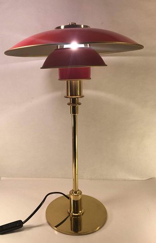 Bordlampe ( jubilæums model ) i forgyldt metal og Røde metalskærme.