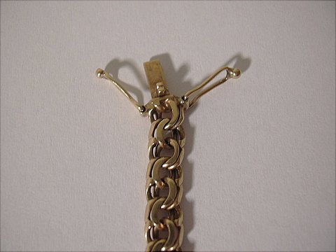 Bismark armbånd af 14k. guld. B.4,45 cm. L. 20 cm. 13g Armbåndet er med et firkløver blad