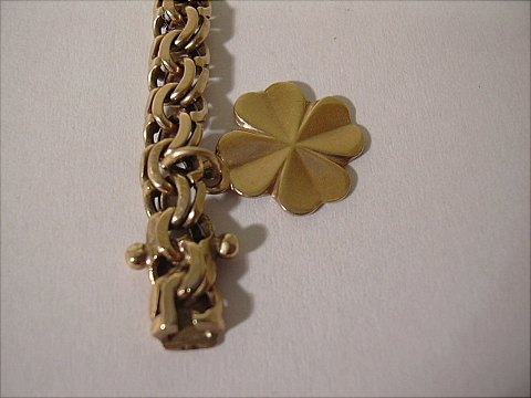 Bismark armbånd af 14k. guld. B.4,45 cm. L. 20 cm. 13g Armbåndet er med et firkløver blad