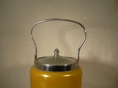 Kiksespand af opalglas monteret med hank af pletsølv.