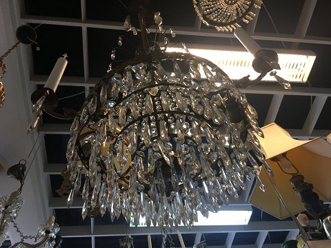 Prismelysekrone med 6 Lysarme udvendig til sterinlys , samt indvendig lys til el.