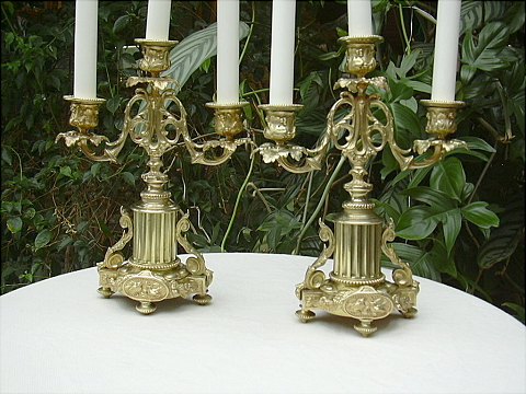 Et par trearmet lyssestager af messing. Flot stand anno år 1880