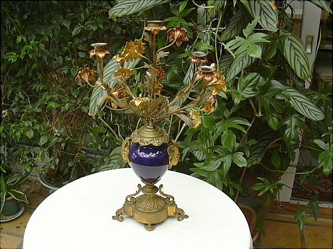 Rococo kandilaber af forgyldt bronce og Sevres porcelæn