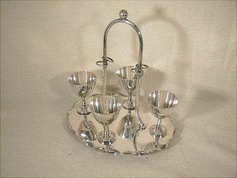 Engelsk æggebæger med holder og skere i pletsølv flot stand