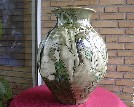 Beautiful large ceramic vase from nearly squad created by artist HF Gross. Lazarus is resurrected a very unique and beautiful vase in perfect condition