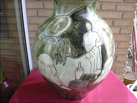 Beautiful large ceramic vase from nearly squad created by artist HF Gross. Lazarus is resurrected a very unique and beautiful vase in perfect condition