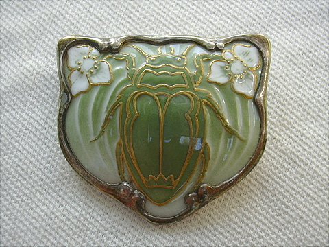 Flot Broche af porcelæn og sølvkant