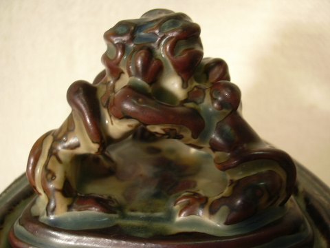 Lid Pot Royal Copenhagen No 20160 Height: 20 cm Bode Willumsen lid pot. performed with relief decorations on the sides and covered with sung glaze. The vase is signed by BW's monogram printed into the bottom. perfect condition.