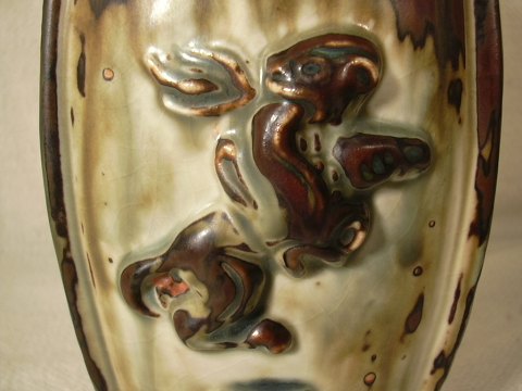 Bode Willumsen für die Royal Königlich lidded. durchgeführt mit Erleichterung Dekorationen an den Seiten und mit Sungglasur. Die Vase ist von BW das Monogramm in den Boden gedruckt unterzeichnet. einwandfreiem Zustand