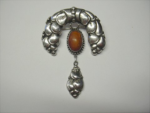 Skønvirke Broche sølv 830S med Carbon slebet Rav vægt 16 gram