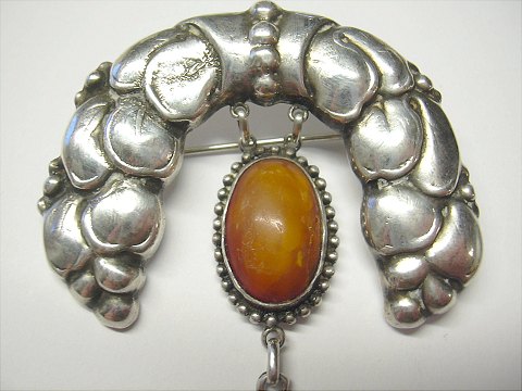 Skønvirke Broche sølv 830S med Carbon slebet Rav vægt 16 gram