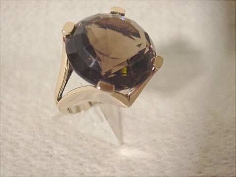 Flot Solitarie Ring med Stor Brillant slebet Røgkvarts som har