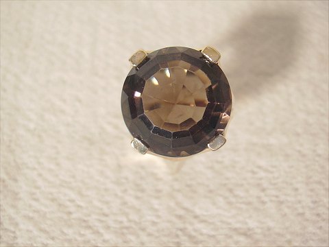 Flot Solitarie Ring med Stor Brillant slebet Røgkvarts som har